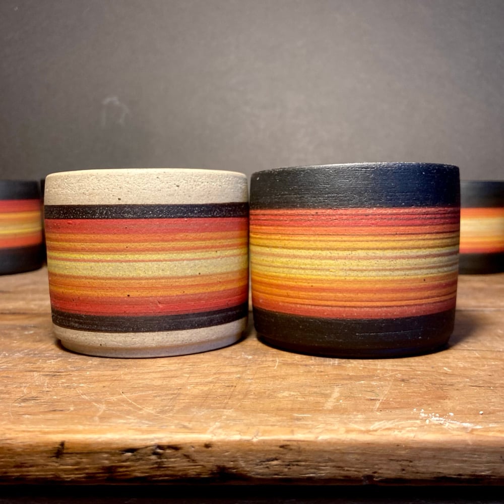 Please note these sunset / sunrise espresso cups are hand painted and each piece will be different.